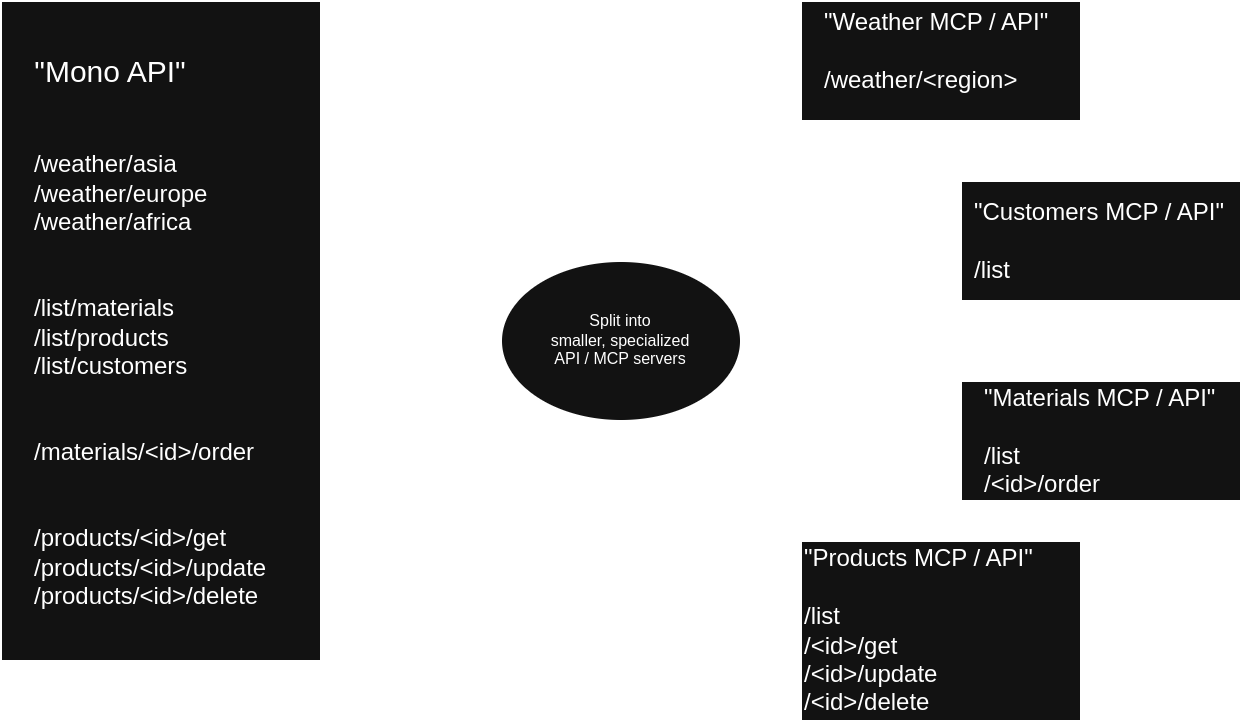 Now, if you're already using REST APIs as a base for your MCP servers, consider refactoring them into independent, more focused APIs: